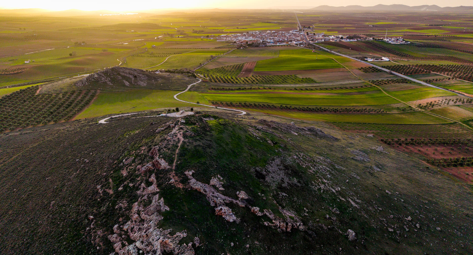 Asentada en la altiplanicie manchega, a más de 800 metros de altitud, ocupa un territorio de transición entre los paisajes abiertos de la comarca y las rutas que comunican este sector con otros núcleos históricos del entorno.