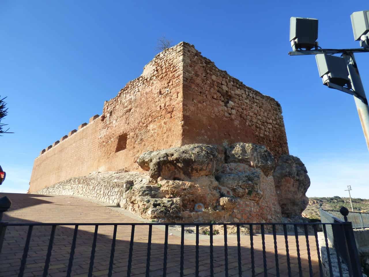 El castillo de Albaladejo se encuentra dentro del propio casco urbano, en el extremo occidental, ocupando el punto más alto y escarpado del cerro sobre el que creció la población. No es un castillo aislado en el campo, sino una pieza ligada al pueblo y a su entorno inmediato, especialmente a la parroquia, con la que forma un conjunto. Su situación ayuda a entender su función histórica: vigilar el valle y los pasos hacia Andalucía.