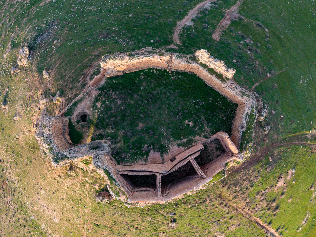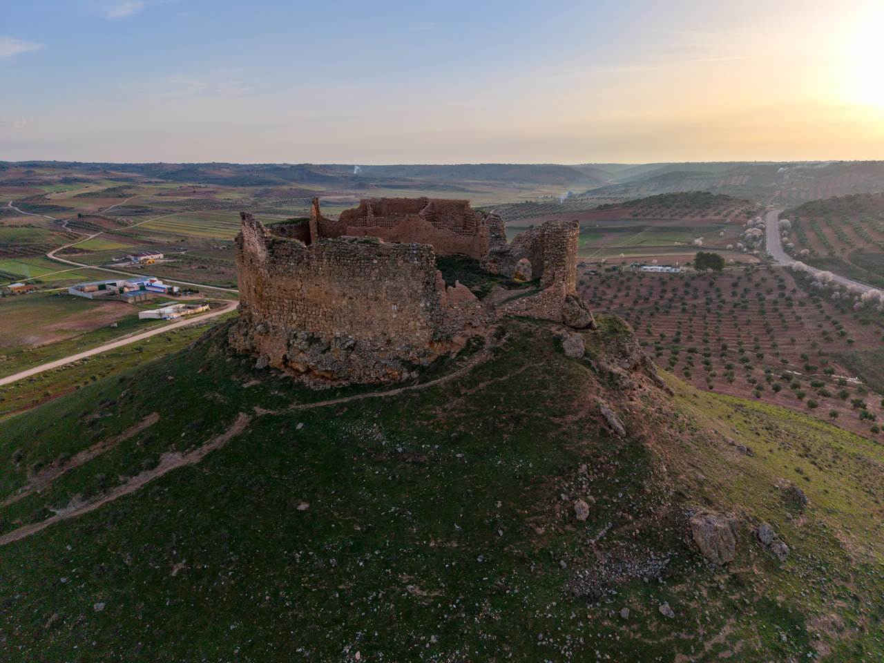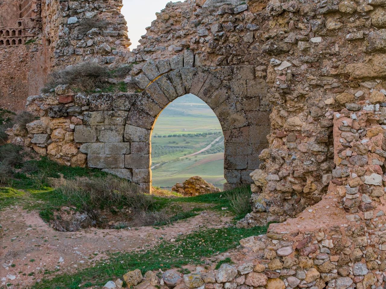 Su emplazamiento explica también su larga trayectoria histórica. La zona tuvo un valor estratégico desde la Antigüedad, vinculada al territorio de la ciudad iberromana de Laminium. En el cerro se documentan indicios de ocupación omeya y, ya en época cristiana, la plaza se consolida tras las campañas posteriores a las Navas de Tolosa: a inicios del siglo XIII pasó a la Orden de Santiago. En 1241 se organiza la encomienda y en 1243 Alhambra obtiene fuero, reforzando su papel comarcal. La fábrica del castillo se sitúa entre mediados y el último tercio del siglo XIII, con usos administrativos y de control territorial durante toda la Baja Edad Media.