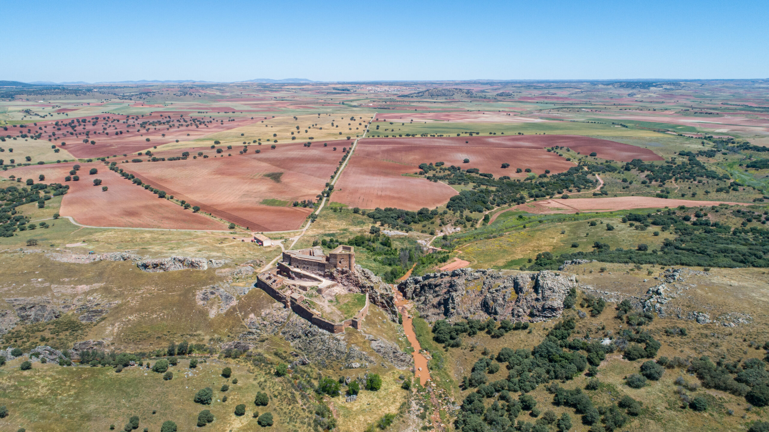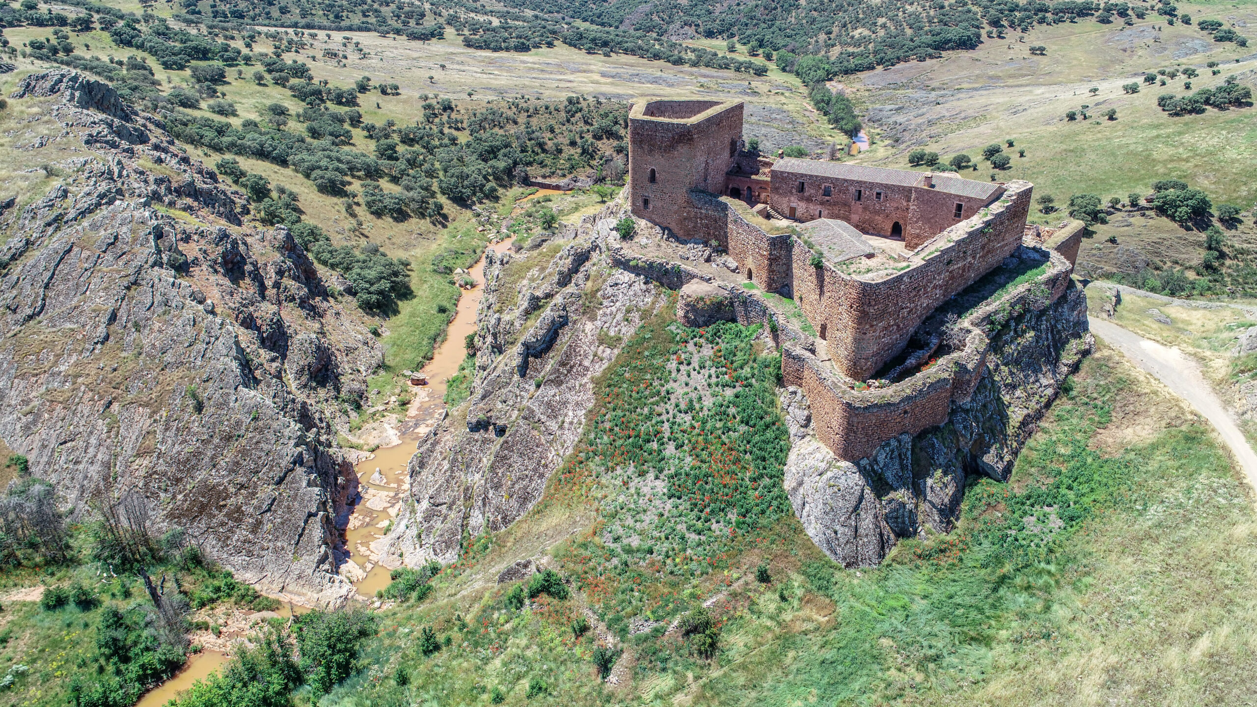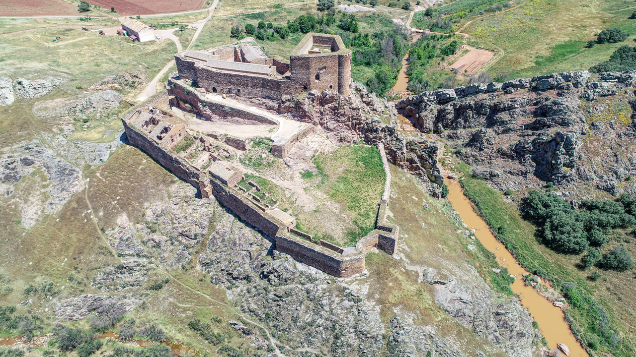 • La llegada a la fortaleza, con el foso natural del río Guadalén,
