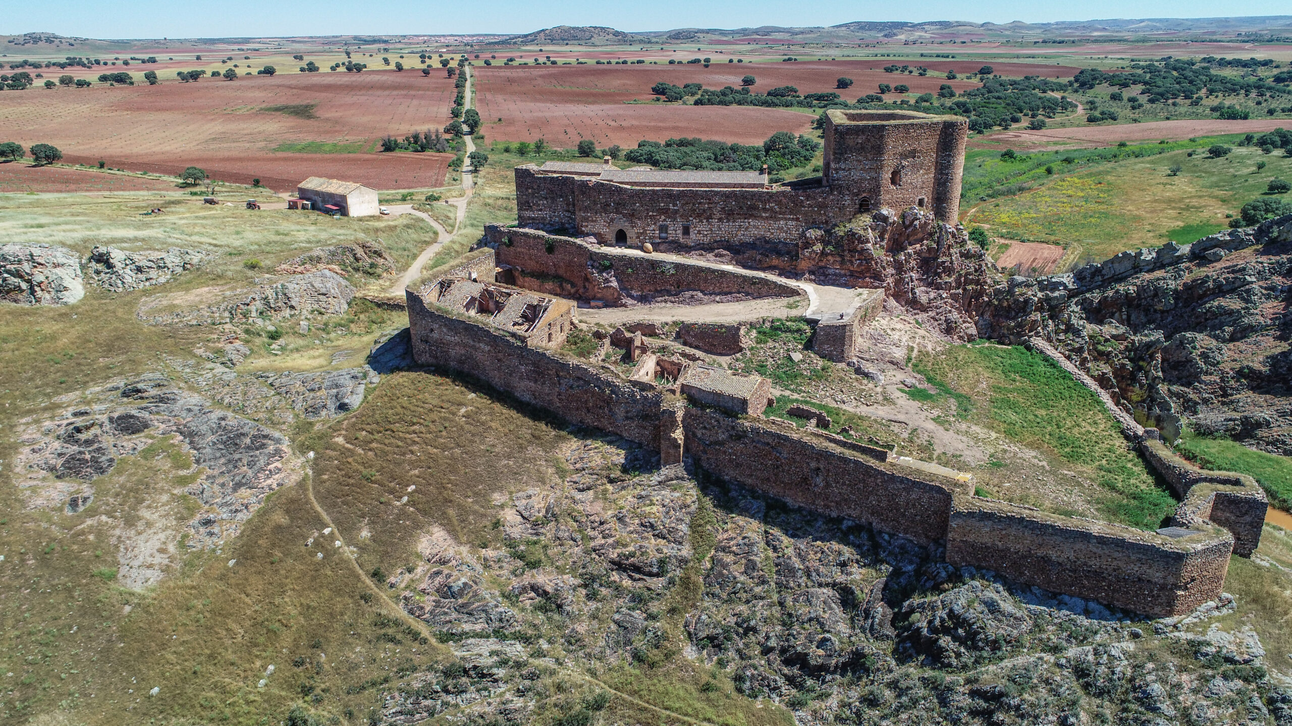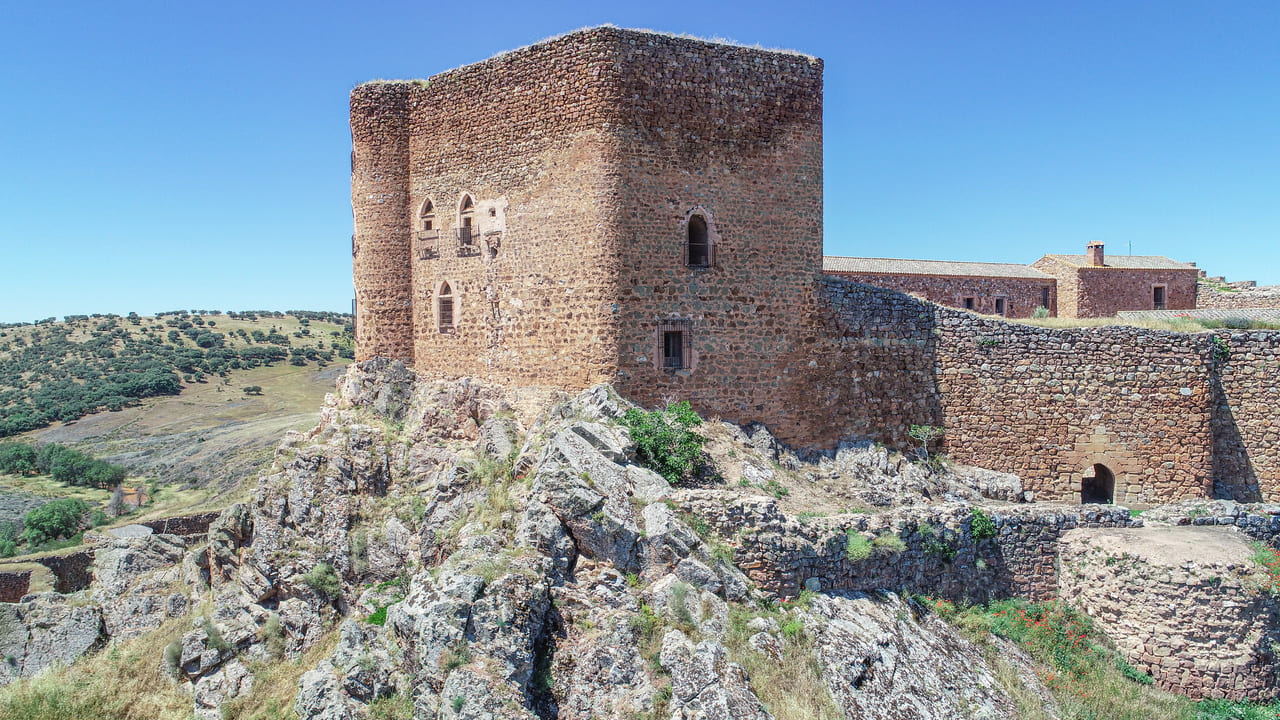 El castillo de Montizón se levanta en el suroeste del Campo de Montiel, sobre un gran crestón de cuarcita que domina el río Guadalén, un lugar de gran valor natural e histórico. La fortaleza forma un todo con la roca y el paisaje, de ahí que aquí encontrara el poeta Jorge Manrique la inspiración para escribir las famosas “Coplas a la muerte de su Padre”.