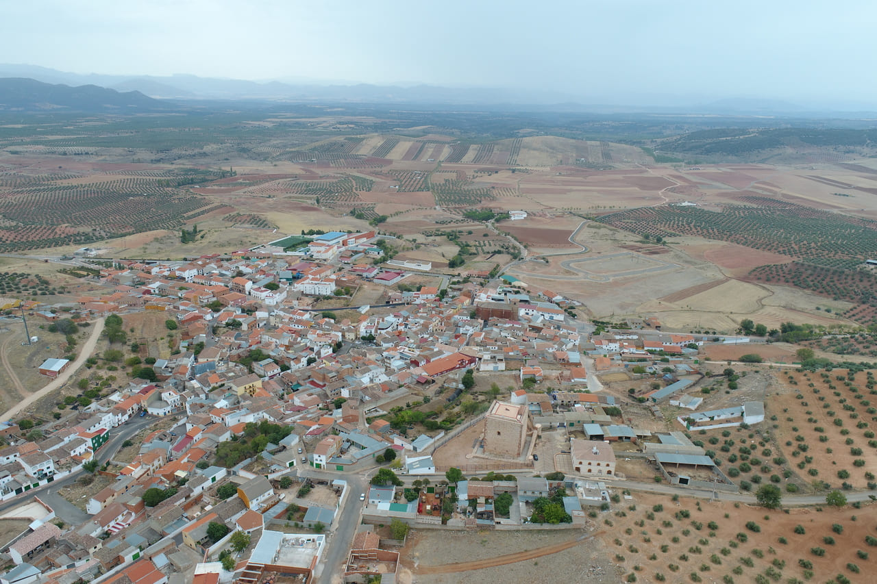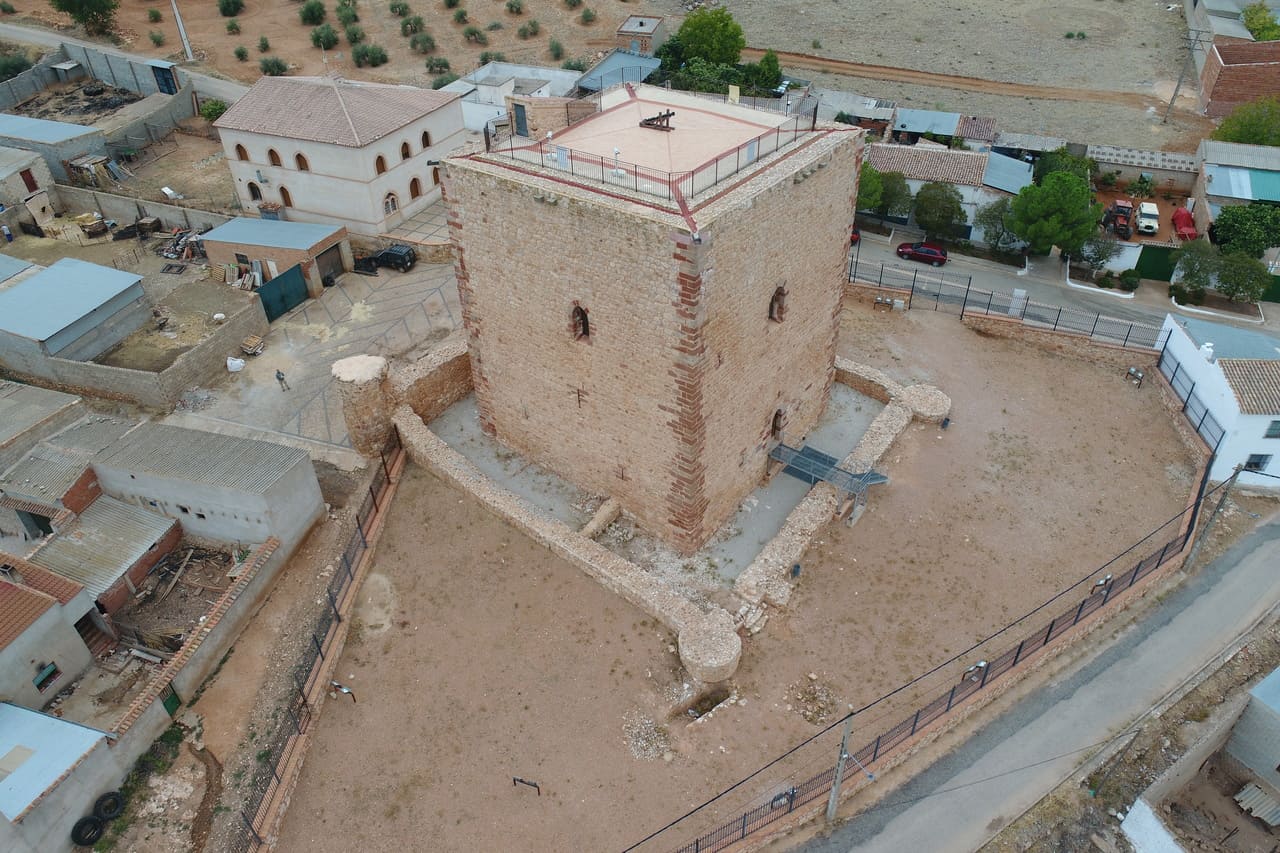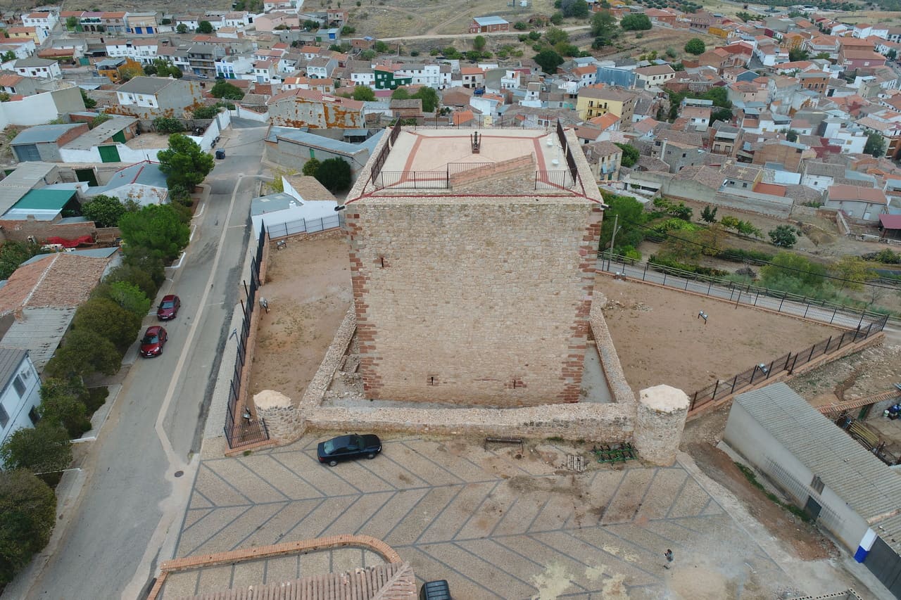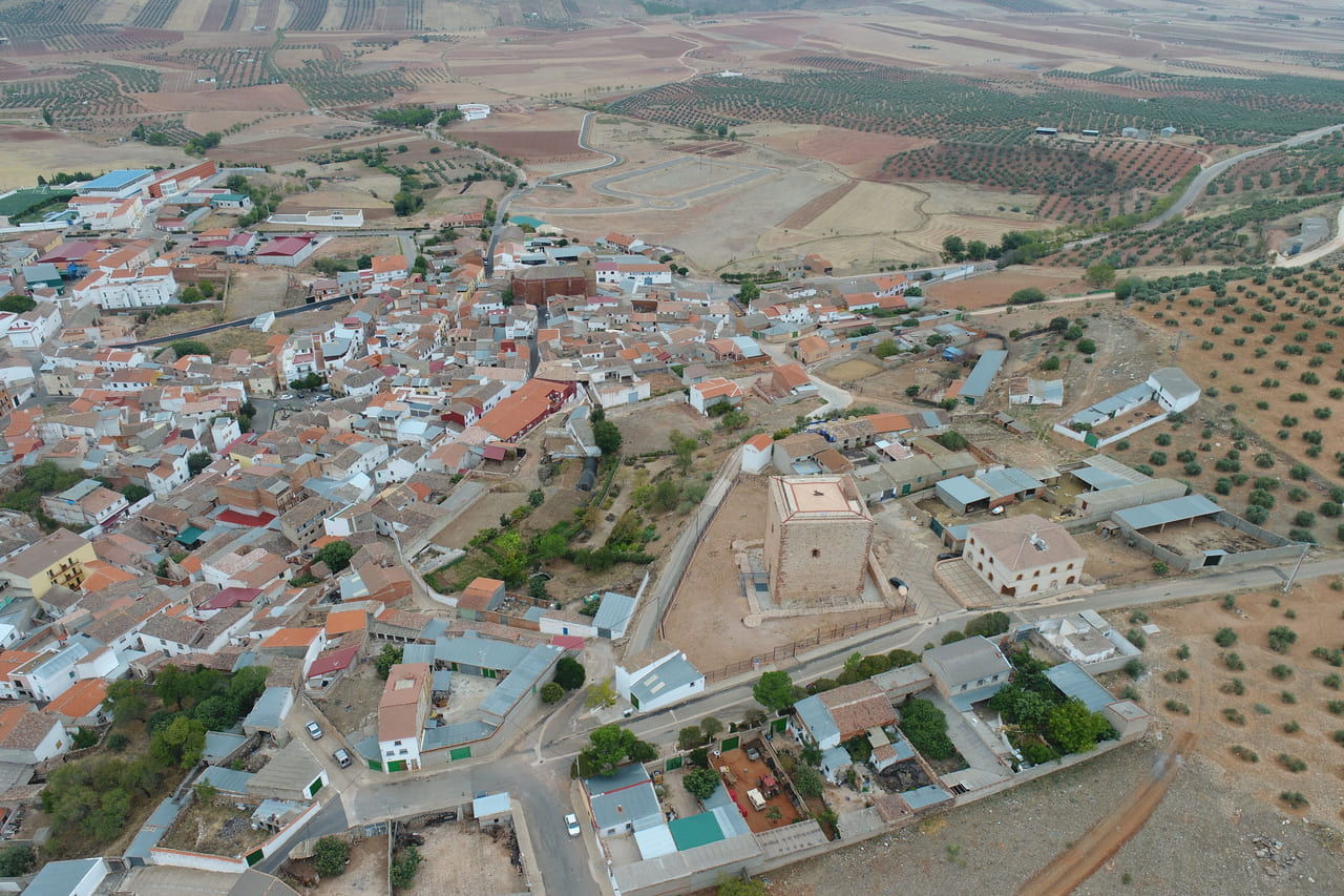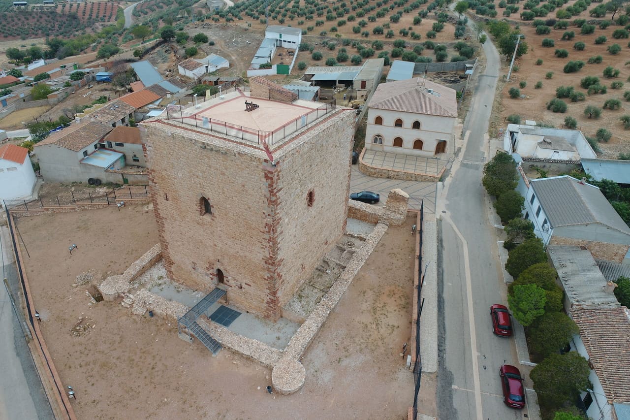 El castillo de Albaladejo se encuentra dentro del propio casco urbano, en el extremo occidental, ocupando el punto más alto y escarpado del cerro sobre el que creció la población. No es un castillo aislado en el campo, sino una pieza ligada al pueblo y a su entorno inmediato, especialmente a la parroquia, con la que forma un conjunto. Su situación ayuda a entender su función histórica: vigilar el valle y los pasos hacia Andalucía.