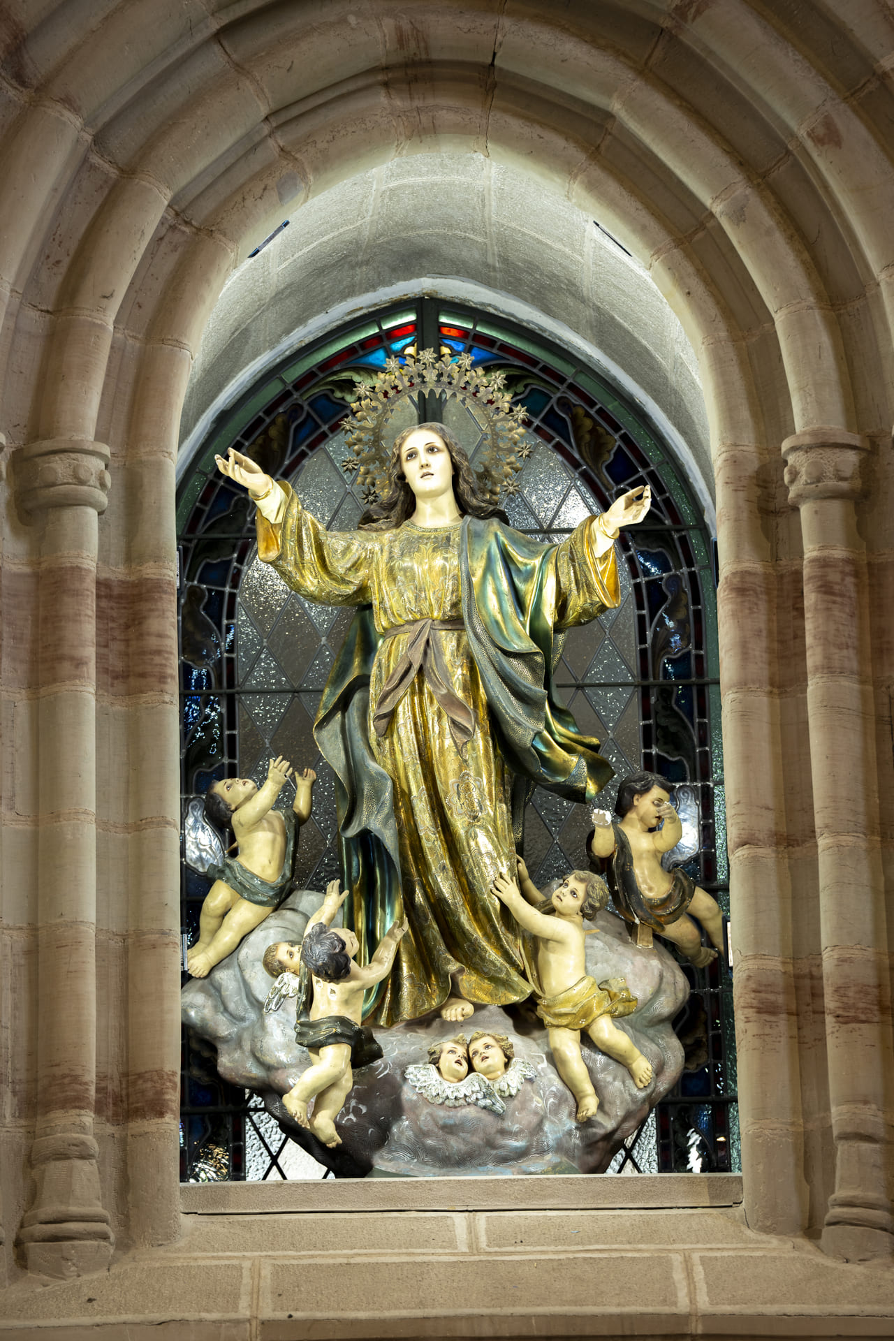 La visita permite comprender fácilmente su arquitectura. El interior se organiza en una gran nave con bóvedas de crucería y capillas laterales, mientras que la cabecera y el rosetón aportan luz y ordenan el recorrido.